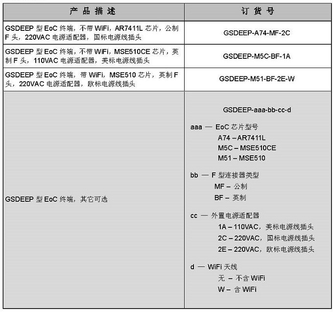 GSDEEP 配合同軸電纜以太網(wǎng)頭端設(shè)備,旨在通過有線電視用戶家中已有的同軸電 纜網(wǎng)絡(luò)在接收有線電視信號的同時(shí)可接入以太網(wǎng)數(shù)據(jù)信號。
